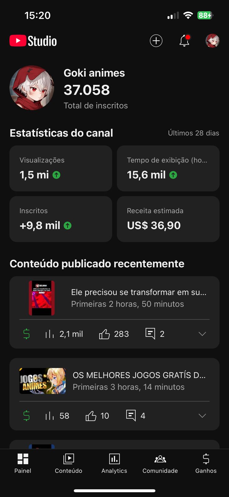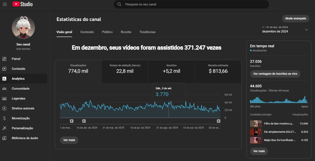 O canal Goki Animes é um canal voltado para o nicho de animes e parceiro do Curso Criador Pro. Em menos de 6 meses ele já alcançou métricas incriveis, com um canal sem aparecer, utilizando um avatar virtual para criar conteúdo e seguindo o passo a passo mostrado no curso.