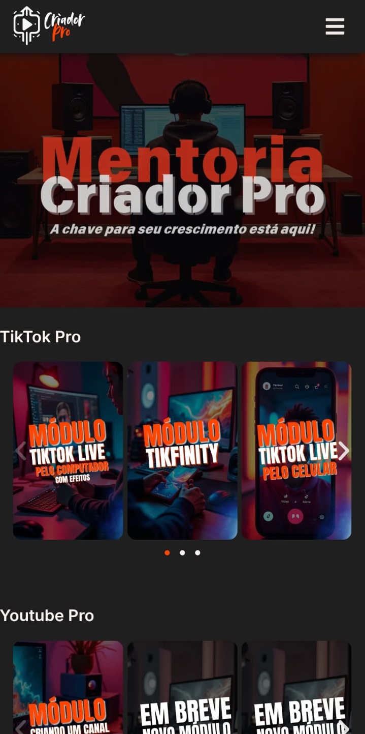 Seja um Criador Pro e garanta todo conteúdo, os bônus e os próximos conteúdos que estão por vir por apenas: